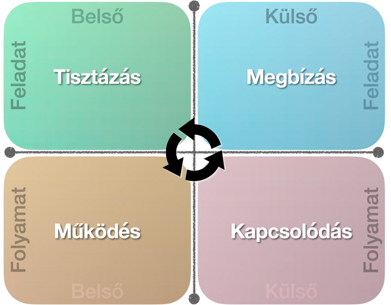 Ezen a területen veszed észre, hogy valami nem jó. Súrlódások vannak, hirtelen kipattanó feszültség, hatékonytalanság, pártokra szakadó csapat. Érdemes megvizsgálnod, hogy az előző két pontban hogyan álltok, mert lehettek szuperek a hétköznapi működésben, hogyha az alapok nincsenek rendben. Amennyiben ott minden rendben van, akkor erre tovább!